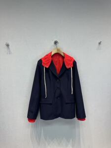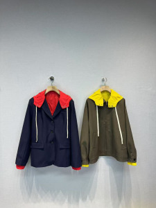 Nanyou 婦人服 25 初秋の新しい偽ツーピーススーツパッチ刺繍コントラストカラーステッチフード付きジャケット男性と女性用