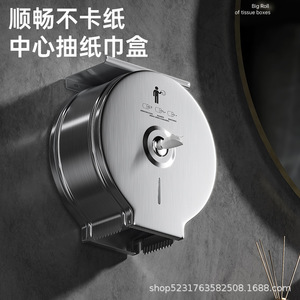 不锈钢中心抽卷纸盒卫生间纸巾盒大盘纸盒免打孔自动断纸省纸神器