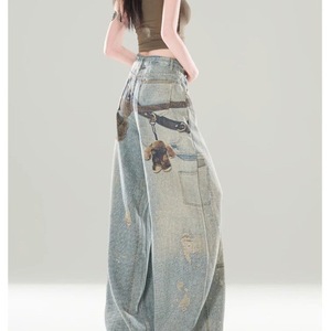 【广州新塘牛仔】复古高腰印花阔腿牛仔裤女宽松直筒显瘦垂感拖地
