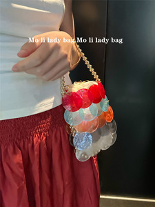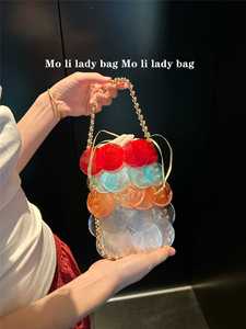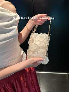 天然貝殻新色手織り貝殻バッグファッションカラー女性ハンドバッグビーズチェーン魚鱗バッグ
