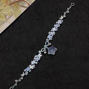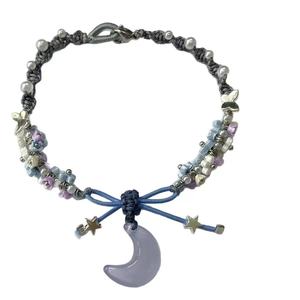 新しい中国風の星と三日月の花の編み込みブレスレット、女性用、ニッチな個性、レトロなブレスレット、多用途の学生ブレスレット