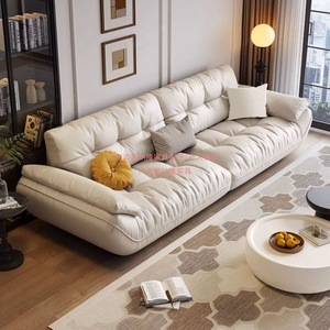 云朵真皮沙发法式复古设计师三人位沙发客厅小户型极简直排帆船木