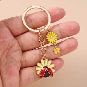 新しいファッション牧歌的なスタイルの花動物キーホルダーシンプルなデイジーてんとう虫キーホルダーキーチェーンバッグペンダント