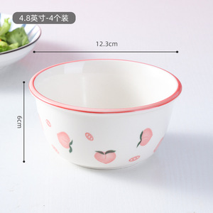 可爱桃心陶瓷碗【4个装】 (4.8寸)⚑✦