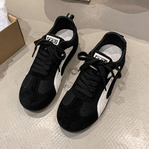 香港スタイルのニッチオリジナルの男性と女性の黄色と黒のカラーマッチングドイツのトレーニングシューズインアメリカン多用途レトロメッシュ通気性レーシングシューズ