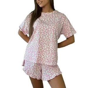 クロスボーダーヨーロッパとアメリカのホームウェアはスーツの外でも着用可能、ファッショナブルなプリントの女性用パジャマ、ゆったりとした2点セット
