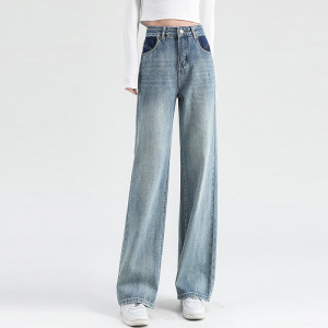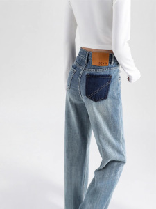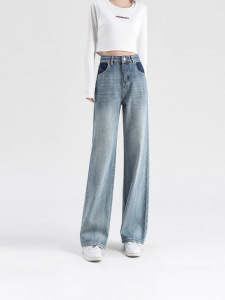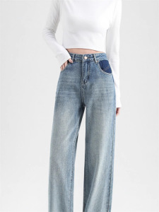 哥家商场同款女装2025夏季时尚百搭浅蓝色撞色阔腿老爹裤