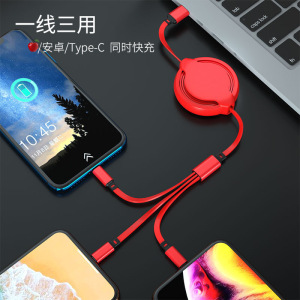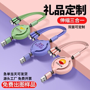 中圆一拖三伸缩数据线手机快充多功能充电硅胶三合一液态礼品定制