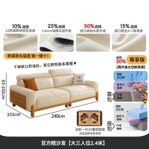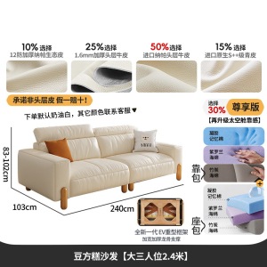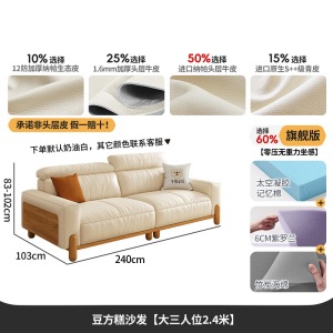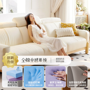 Tongyu テー豆腐ブロック日本製無垢材クリームログスタイルリビングルーム小さなアパートメントバックパック調節可能なレザーソファ