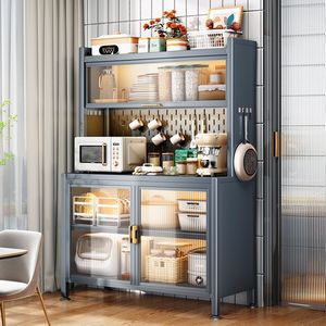 厨房储物柜落地置物架餐边多层烤箱微波炉锅电器铁艺餐边柜橱柜子