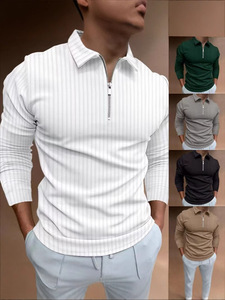 2025 新しいクロスボーダーヨーロッパとアメリカの秋冬 AliExpress Amazon ポロシャツ ジッパー ストライプ長袖メンズ ポロシャツ