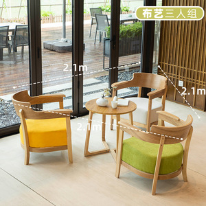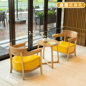 ミルクティーデザートショップカフェブックバーテーブルと椅子の組み合わせシンプルカジュアル商談受付無垢材シングルソファ