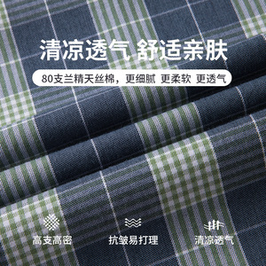 【天丝+精梳棉】新款中年男士格子短袖透气休闲衬衫时尚薄款衬衣