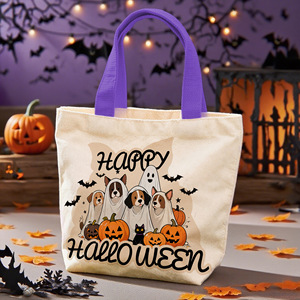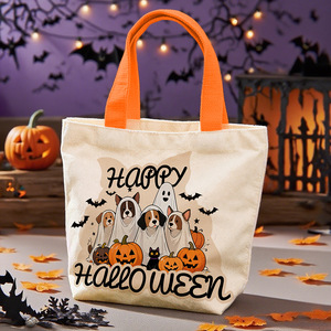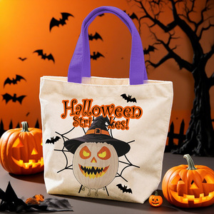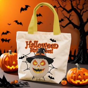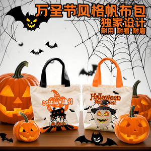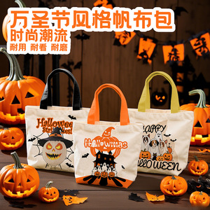 跨境新款万圣节糖果礼品帆布袋创意卡通手提袋学生节日派对小拎包