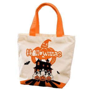 南瓜鬼屋橙色横款手提袋;帆布;27*22*7厘米