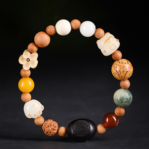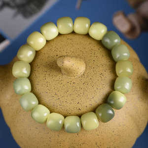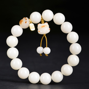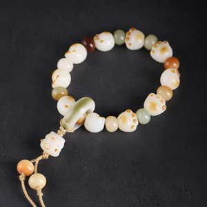 白翡翠菩提根ブレスレット、菩提樹ビーズブレスレット、男性用ロザリオ、シングルサークル三日月マルチトレジャー、スモールライム