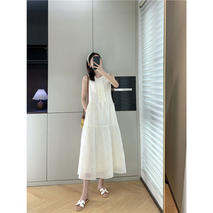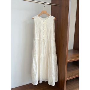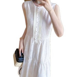 フランスシングルキャビネット1.8K+!ヘビーウェイト刺繍軽量テンセルリヨセルラウンドネックノースリーブAバージョンベストドレス女性用