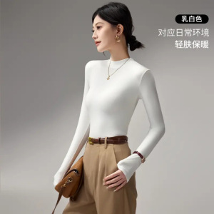 莫代尔小立领打底衫女长袖春秋冬加绒修身气质女装半高领内搭上衣
