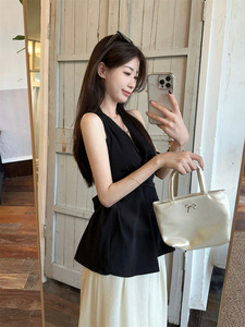 时尚法式扭结设计挂脖露背上衣夏季百搭清新减龄甜美收腰无袖背心