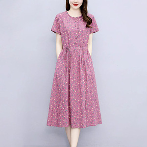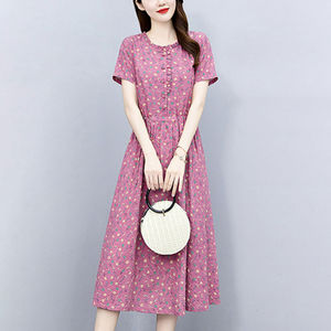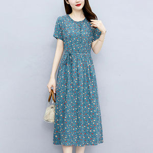 棉麻连衣裙夏季新款韩版时尚休闲碎花裙气质显瘦遮肉中长款A字裙