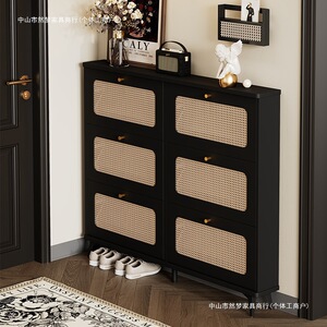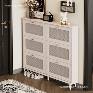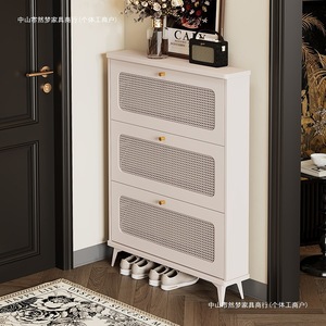 新しいレトロな籐の靴キャビネット、大容量の玄関ドア、家庭用超薄型ダンプカートエントランスキャビネット、壁に沿ったエントリーリビングルームの収納
