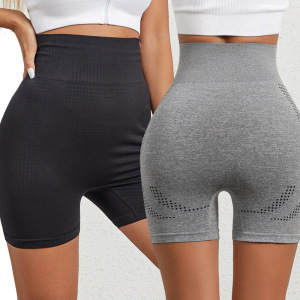 欧美新款高腰弹力无缝健身短裤女提臀塑身速干瑜伽运动丰臀塑身裤