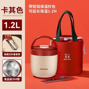 1.2L【米白红】+餐具+保温袋