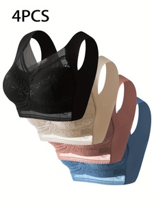 2025年新作ヨーロッパとアメリカの女性用4ピースカラフルなレースの下着ソフトデイリーブラジャー