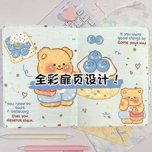 蓝莓黄油小熊笔记本a5皮质记事本学生日记本日记本黄油小熊硬壳本