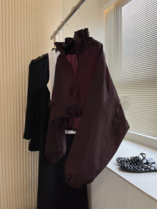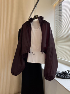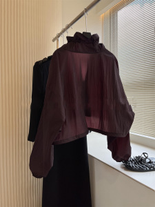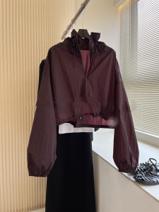 Yilu ラズベリーレッドスタイルショートスタンドカラープリーツフラワーバッグカラー軽量日焼け止め薄手ジャケットドロップシッピング