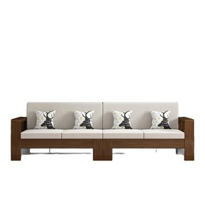 【四人位柚木色】 送棉麻坐垫靠背抱枕