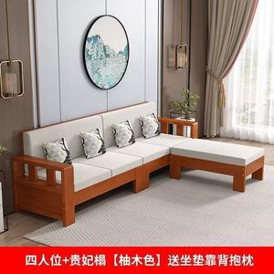 【四人位柚木色+贵妃榻】 送棉麻坐垫靠背抱枕