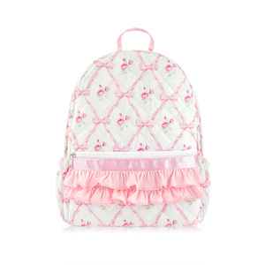 クロスボーダー新作バックパック、かわいいキルティングキルティング小花柄スクールバッグ、高価値耳付きピンク軽量バックパック
