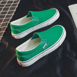 2025春夏新款韩版女纯色森林绿帆布鞋一脚蹬懒人鞋瑞安硫化滑板鞋