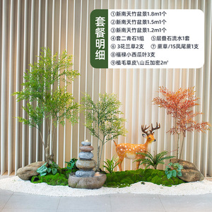 造花南天竹鉢植え造園緑植物装飾屋内外階段コーナーウィンドウ床レイアウト