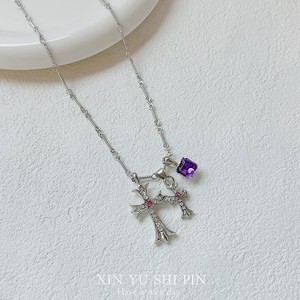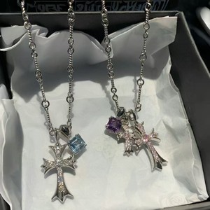 パープル ダイヤモンド クロス ネックレス