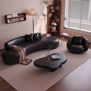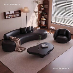 ファッションハイエンドブラックレトロリビングルーム小さなアパート受付美容室衣料品店休憩エリア曲面ソファ