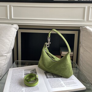 韩国小众包包复古麂皮绒单肩腋下包女2025新款磨砂简约时尚法棍包