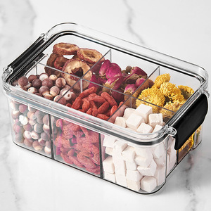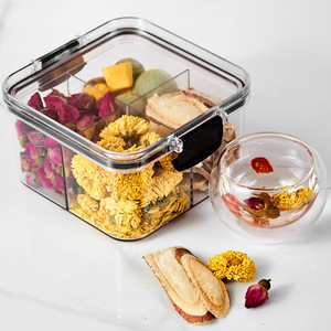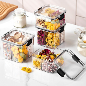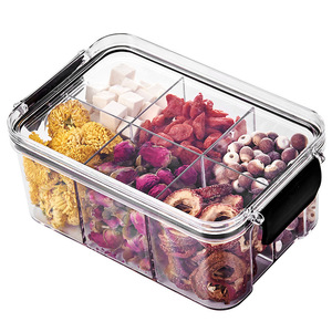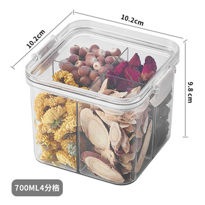 分格密封罐沙拉水果花茶茶叶干果收纳密封储物盒透明PET多格密封