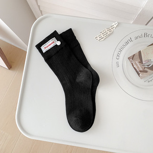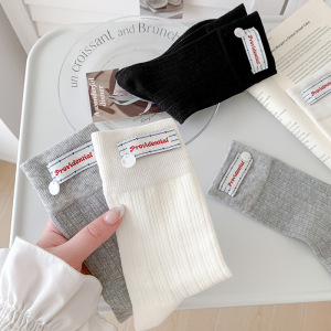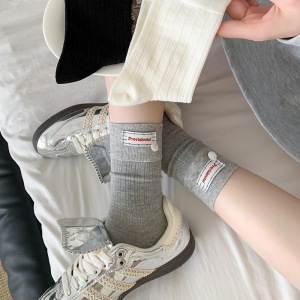 布ラベルシェルソックスレディースミッドカーフソックスファッショナブルで多用途なボンレスパイルソックスイントレンディな韓国グレーソックス春と秋