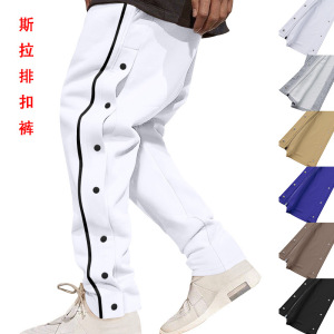 アメリカンスタイルの秋冬用厚手ヒップホップメンズパンツ、ハイストリートファッション、バスケットボール風、サイドジッパー付きスポーツカジュアルパンツ