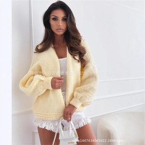 2025 秋冬新クロスボーダーロシア無地カーディガン V ネック長袖コート女性のセーター 6 色