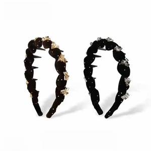 多用途韓国ベルベットラインストーン波状ヘッドバンド女性のための新しいライト高級高頭頂部ヘッドバンド洗顔ノンスリップヘアピン