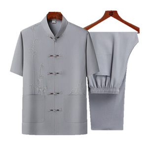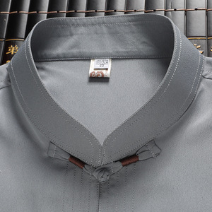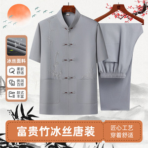 中高年向けアイスシルク半袖スーツ メンズ カジュアル 薄手シャツ お父さん おじいちゃん向け 中国風シャツ ゆったり