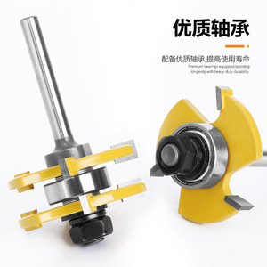 6本刃1/4柄、8本刃12柄、1/2柄三枚刃T型ほぞ穴加工用ナイフ、サイズ揃い、三枚刃フローリング接合用ナイフ