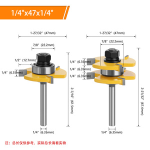 三枚刃T型ほぞ穴ナイフ 1/4x47x1/4