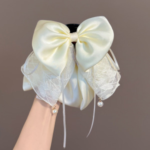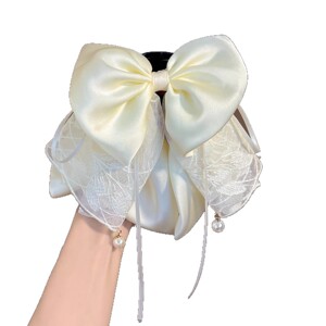 パールリボン付きハーフポニーテールクリップ、髪量を増やすヘアクリップ、後頭部用シャーククリップ、パールヘアアクセサリー