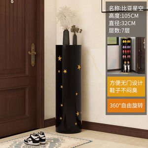 鞋柜门口超薄旋转新款钢制个性立式轻奢360度圆形圆桶鞋架包安装