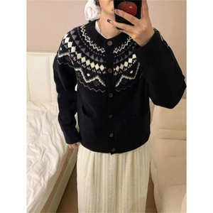新しいレトロなフェアアイル雰囲気デザインレイジースタイルセーターカーディガン文学ラウンドネックセーター女性の多用途ジャケット