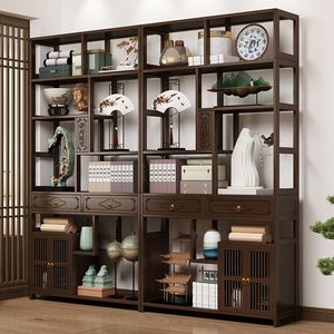 博古架实木中式多宝阁展示柜茶室茶柜茶具架子置物架茶叶收纳柜子